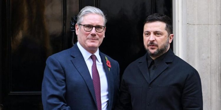United Kingdom—Ukrainian President Volodymyr Zelensky has been welcomed by Prime Minister Sir Keir Starmer outside 10 Downing Street ahead of talks focused on the ongoing war with Russia.