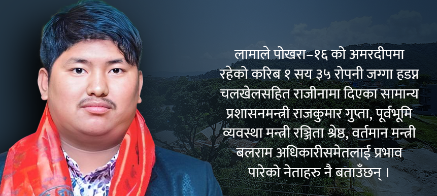 पोखराको लिची बगैंचा नामसारी गराउने र विभिन्न ठाउँका जग्गा छुट दर्ता गरिदिने नाममा बिचौलिया सुजन लामाले करोडौं उठाएको पाइएको छ ।