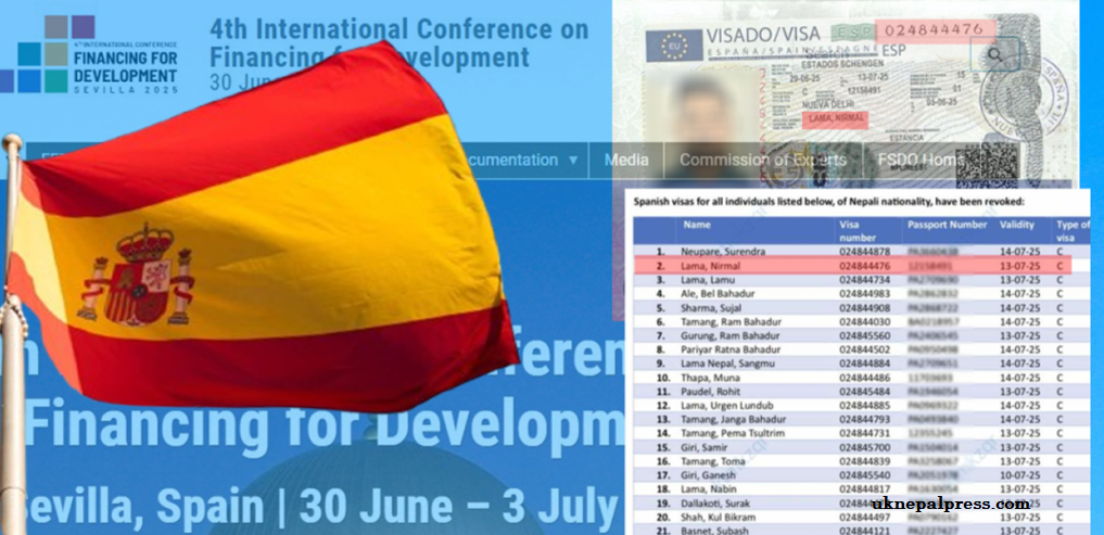 संयुक्त राष्ट्रसंघीय कार्यक्रम ‘विकासका लागि वित्तको अन्तर्राष्ट्रिय सम्मेलन’ मा सहभागी हुने भन्दै भिसा लिएकाहरूको विवरण दिल्लीस्थित स्पेनिस दूतावासले उपलब्ध गराएको छैन ।
