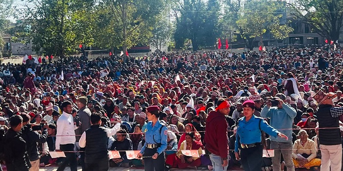 सभामा संयोजक पुष्पकमल दाहाल ‘प्रचण्ड’, सह–संयोजक माधवकुमार नेपाल लगायत शीर्ष नेताहरूले सम्बोधन गर्ने कार्यक्रम छ। वामदेव गौतम, भीम रावल, वर्षमान पुनसहित अन्य वरिष्ठ नेताहरू पनि सभास्थलमा उपस्थित छन्।